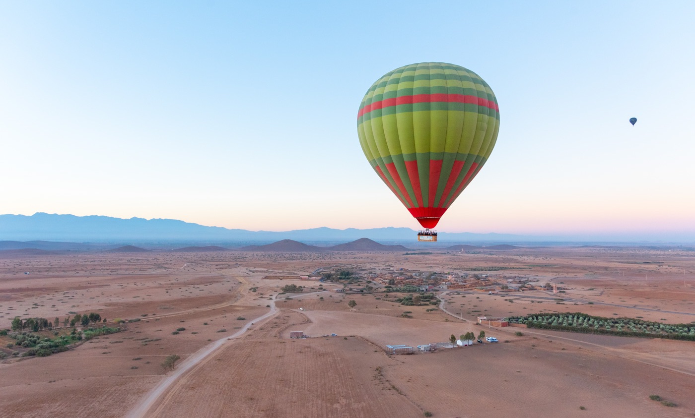 Genießen Sie das beste Heißluftballonerlebnis Ihres Lebens und bewundern Sie den Sonnenaufgang über die Berge von Marrakesch. Anschließend nehmen Sie ein traditionelles Frühstück in einem marokkanischen Zelt zu sich – ein Moment, den Sie nie vergessen werden,