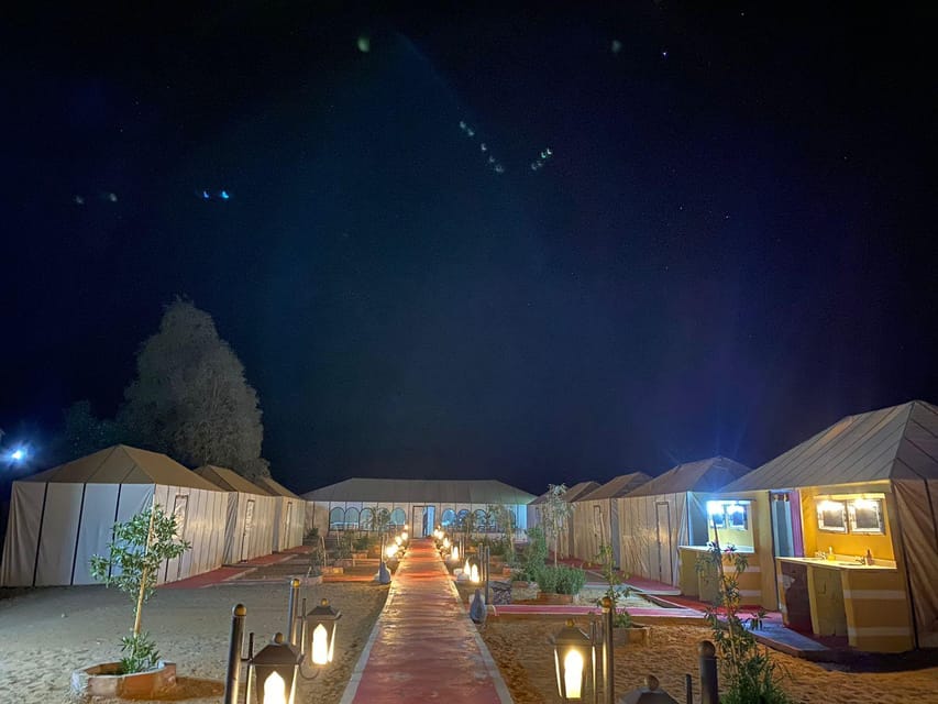 Nach dem Fruehstueck, Weiterfahrt zu den Todra-Schluchten, Mittagessen unterwegs und Weiterfahrt zu den Palmenheinen von Tinjedad bis zur Fossilienstadt Arfoud, Besichtigung einer Fossilienwerkstadt und Weiterfahrt nach Merzouga, Kamelritt ueber die faszinierenden Sanddünen von Erg Chebbi um den Sonnenuntergang zu bewundern, Übernachtung in Nomadenzelten mitten der grossen Sanduenen von Merzouga.